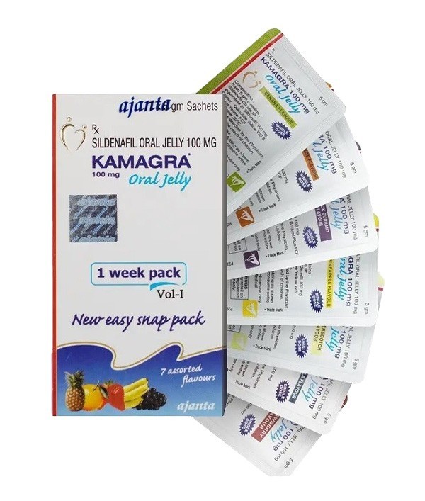 Kamagra Oral Jel Kırılmalı 7’li paket, sildenafil içeren ve 7 farklı meyve aromasıyla sunulan jel form ereksiyon destek ürünüdür.